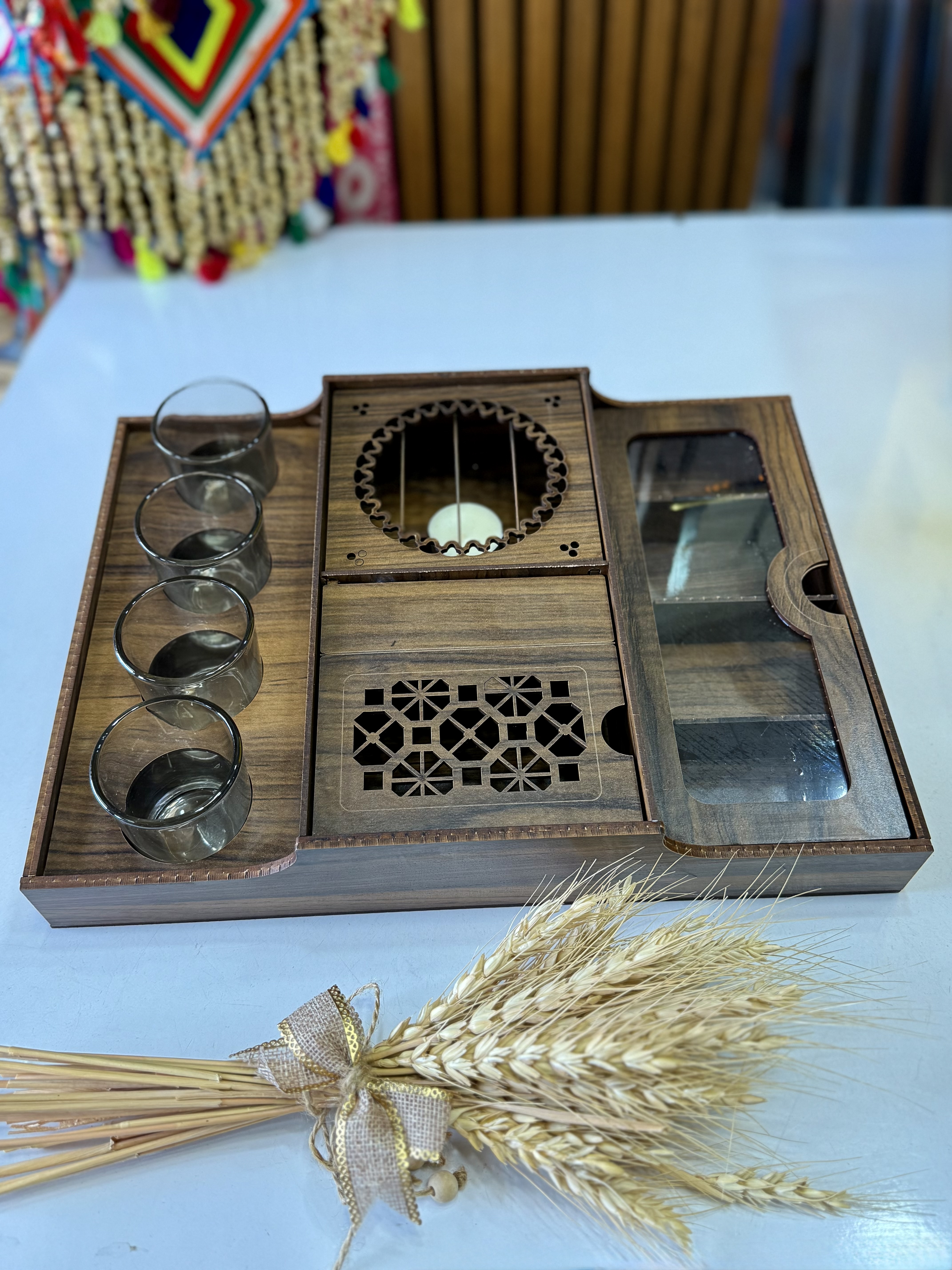 اردوخوری چوبی تاشو هندی چهار خونه دسته دار