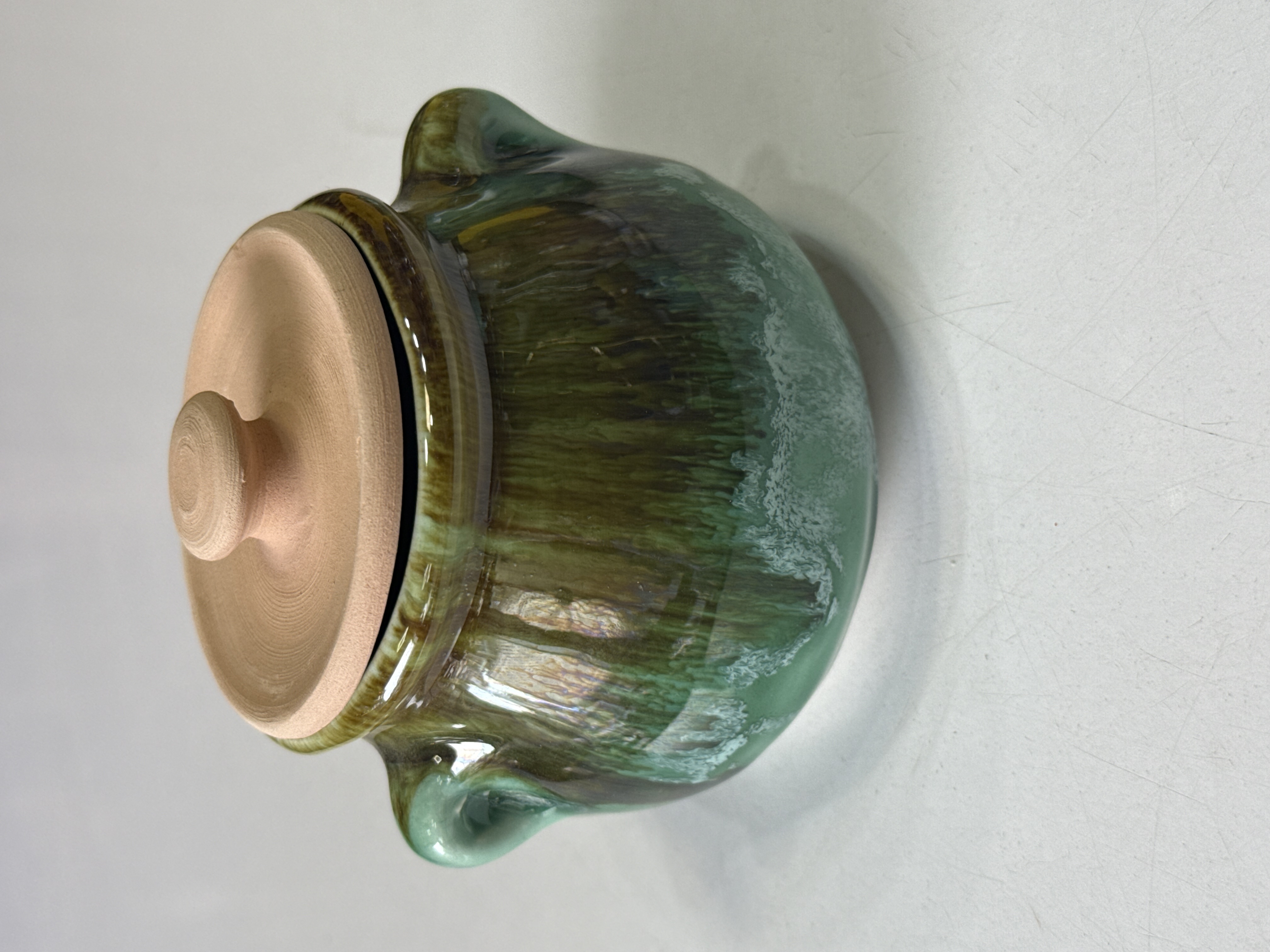 دیزی ادویه و جا ماستی از جنس سرامیک با درب سفالی با دو دسته کوچک ک زیبایی محصول چندین برابر کرده قطر دهانه ۸سانت ارتفاع ۹سانت