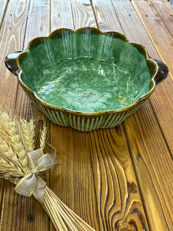 تارت لبه چین دسته دار جنس سرامیک از طرح شره ای یک محصول بسیار با کیفیت و طراحی زیبا مناسب میوه خورشت قطر دهانه ۲۷سانت