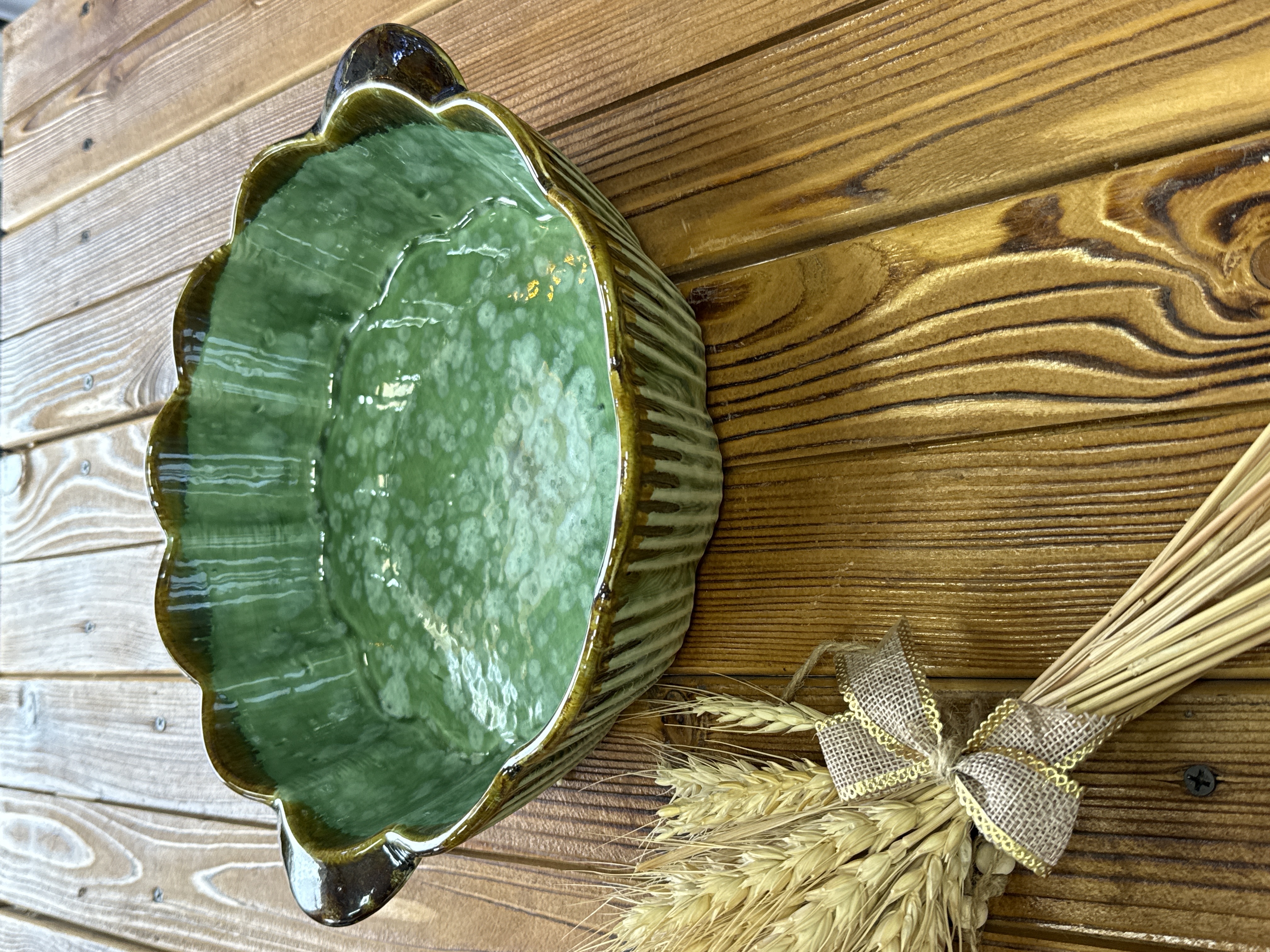 تارت لبه چین دسته دار جنس سرامیک از طرح شره ای یک محصول بسیار با کیفیت و طراحی زیبا مناسب میوه خورشت قطر دهانه ۲۷سانت