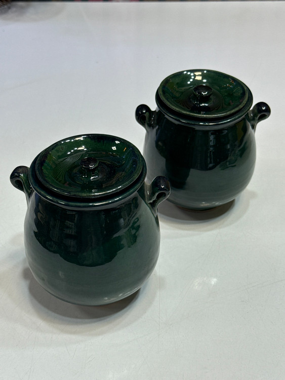 ظرف سفالی دسته دار با درب مناسب ماست خوری تک نفره جا قندان کشمش و... ارتفاع ۱۳سانت قطر دهانه ۸سانت