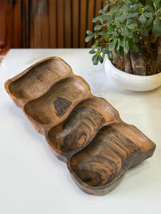 اردو خوری جذاب و با کیفیت چهار خونه از جنس چوب گردو مستطیل شکل در دو تیف رنگی تیره روشن طول ۴۰سانت عرض ۱۹سانت مناسب پذیرایی دورهمی واس تنقلات میوه خشک آجیل و...