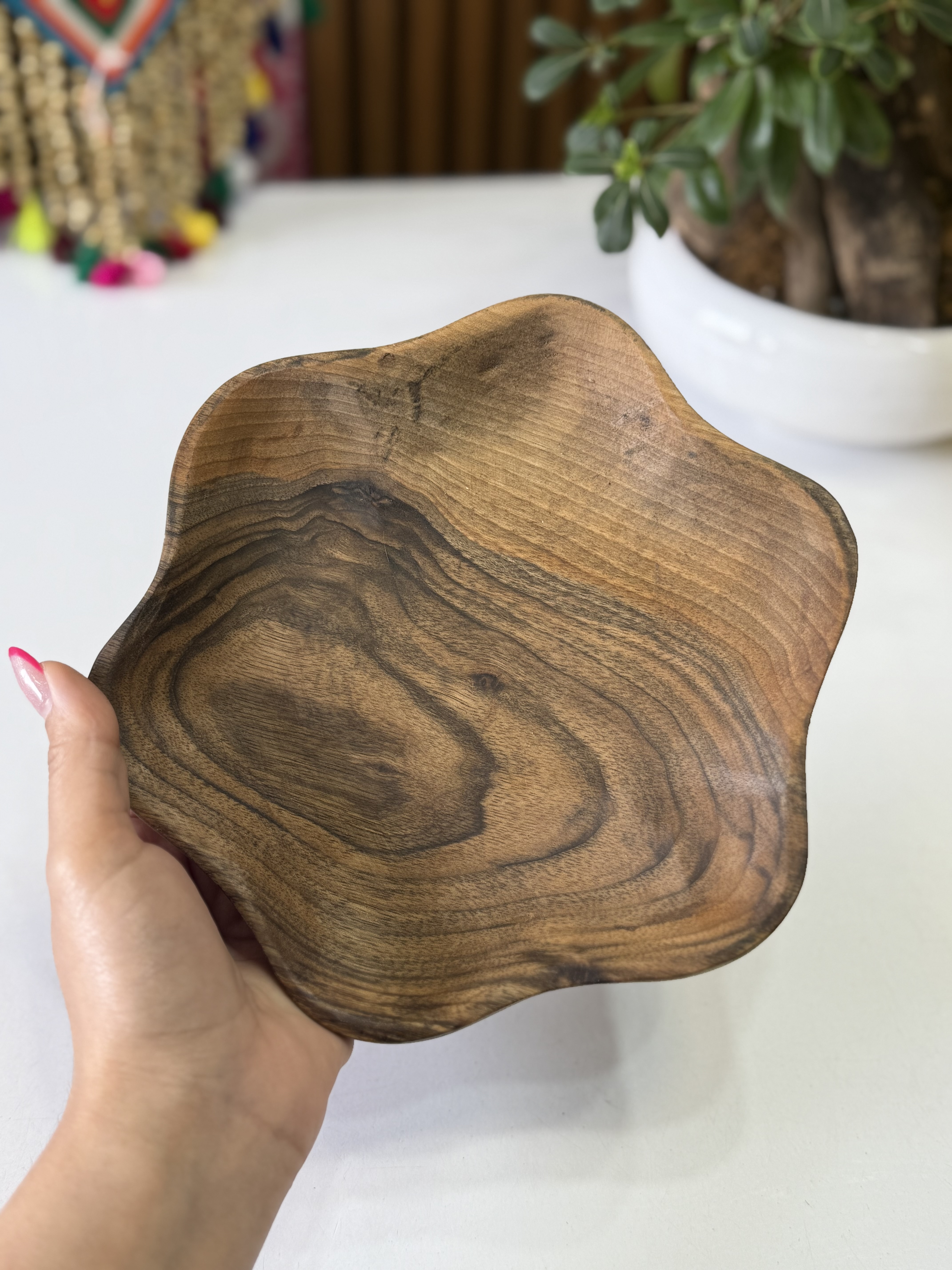کاسه چوبی طرح ستاره ای از جنس چوب گردو