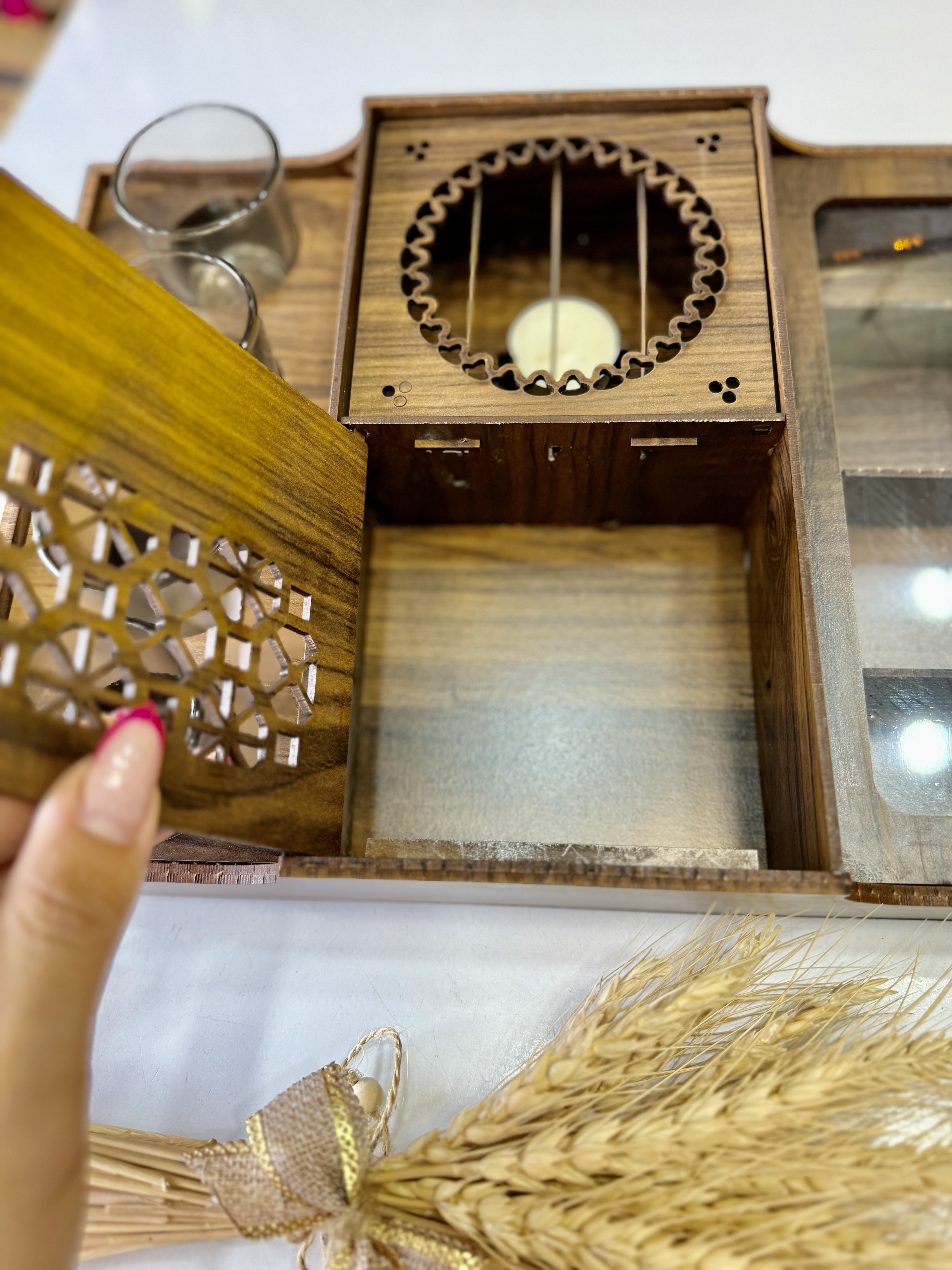 تی بگ زیبا دارای ۴عدد شات جنس خوب جا شکلاتی وارمر دار و دارای چهار خونه متوسط برای تنقلات و شکلات قند و خیلی خوراکی های دیگ برای دورهمی