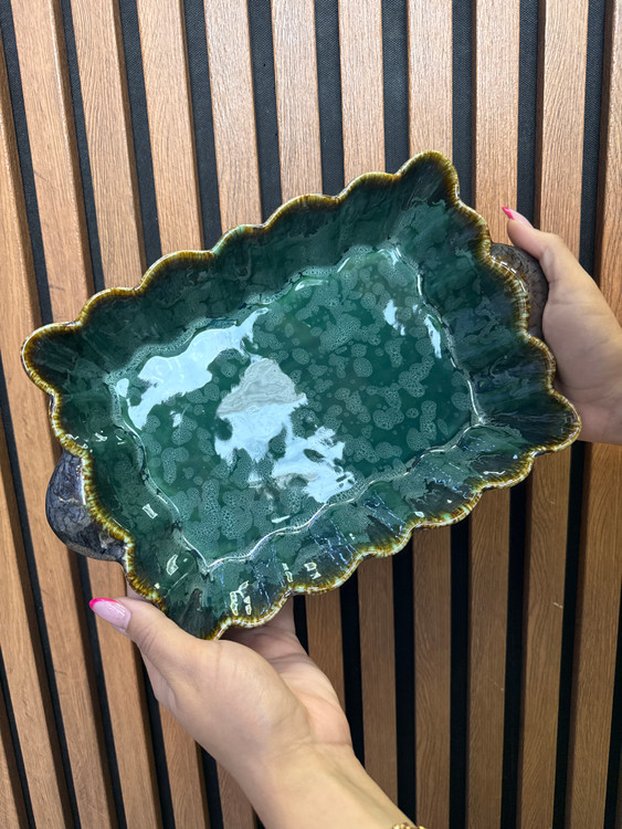 تارت مسطیلی با طرح جذاب شره ای مناسب میوه خورشت سالاد تنقلات طول ۲۷سانت عرض ۲۰سانت قابل شستوشو در ماشین ظرفشویی
