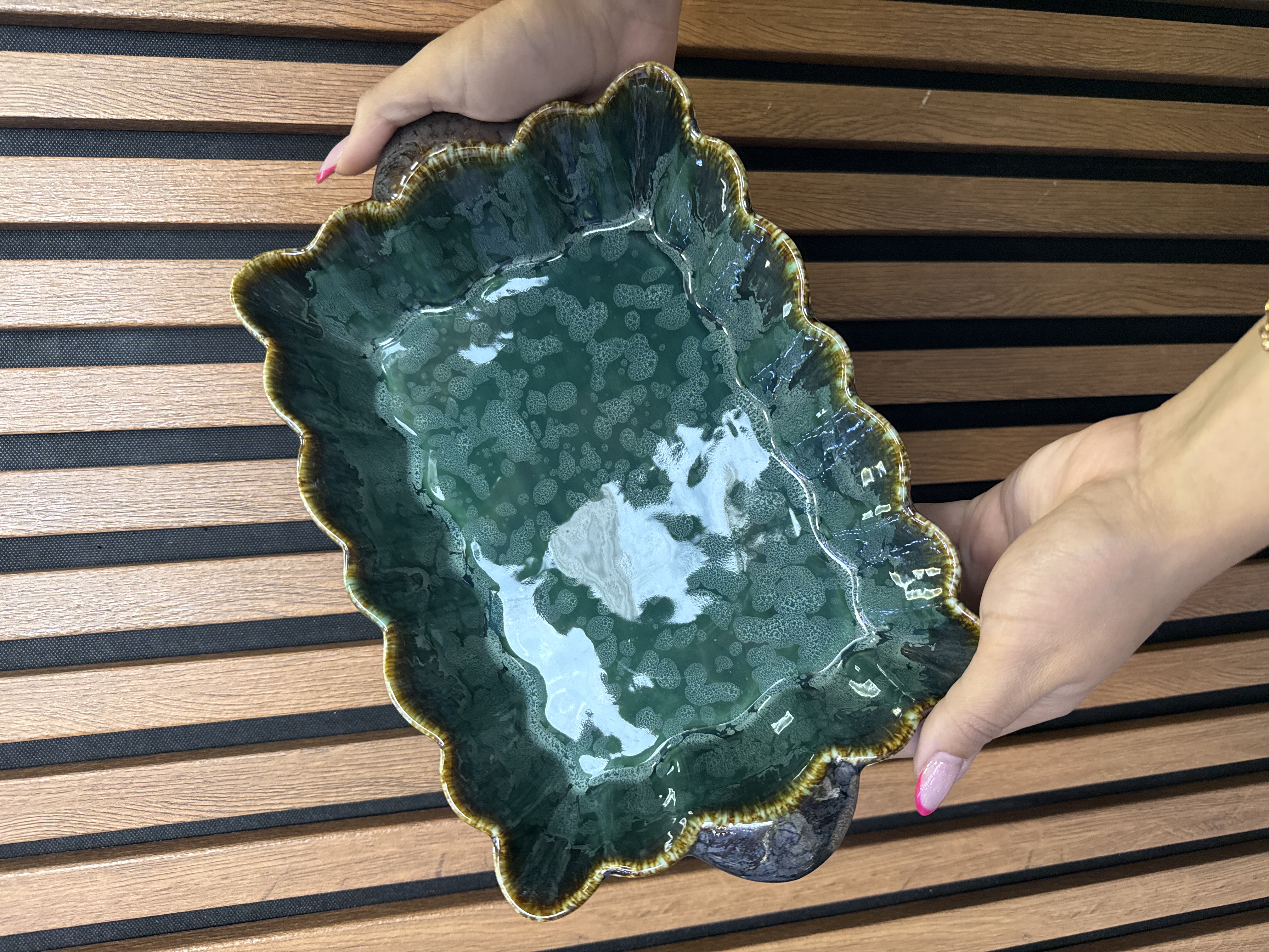 تارت مسطیلی با طرح جذاب شره ای مناسب میوه خورشت سالاد تنقلات طول ۲۷سانت عرض ۲۰سانت قابل شستوشو در ماشین ظرفشویی